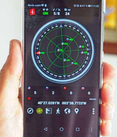 Decepción tras probar durante cuatro semanas, con un Huawei P10, el sistema europeo de posicionamiento por satélite. A los Galileo no los reconocen la mayoría de las apps para dispositivos móviles (en la foto, una app para captar satélites ve cinco satélites GPS, dos Glonass rusos, cero galileos y cero BaiDou chinos). La UE, por su política de libertad de mercado, no promueve el desarrollo de aplicaciones con el código necesario para ver a Galileo. (En INnovadores, elmundo.es)