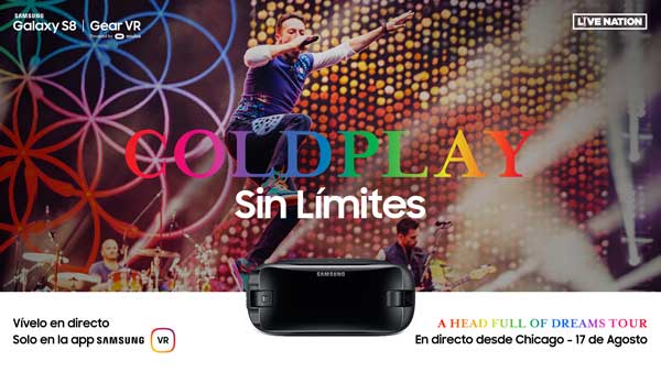 En la madrugada del próximo viernes día 18, a las 3:30 hora española, Samsung y la organizadora de espectáculos Live Nation ofrecerán por primera vez en directo un concierto en realidad virtual, perteneciente a la gira 'A Head Full of Dreams' del grupo británico Coldplay. El espectáculo tendrá lugar en el estadio Soldier Field de Chicago (allí todavía será la noche del día 17) y para 'asistir' virtualmente hará falta un visor Gear VR powered by Oculus, a través del servicio Samsung VR. (Más detalles en nota de prensa)