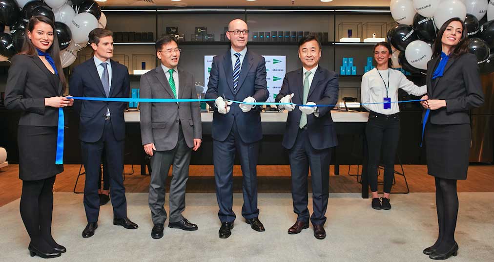 Aunque ya estaba abierta al público, la tienda Samsung instalada en una planta entera de El Corte Inglés de Callao (Madrid) ha tenido inauguración oficial, con corte de cinta y todo. El presidente Europeo de Samsung, MS Kim, y el consejero delegado corporativo de El Corte Inglés, Jesús Nuño de la Rosa, oficiaron de cortadores tijera en mano. Una peculiaridad de la tienda, respecto a ocasiones anteriores en que el fabricante coreano ha abierto espacios físicos para mostrar sus dispositivos, es que en esta ocasión, al estar integrado en un local comercial, sí hay puntos de venta. Se puede ver, tocar y comprar. (Más detalles en nota de prensa)
