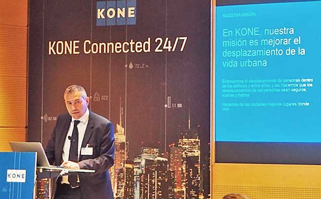 Dice su embajadora en España que los finlandeses tienen fama de hablar poco, pero sus ascensores no paran de hacerlo. Fue la presentación formal en España del nuevo servicio Connected 24/7 del fabricante Kone, cuyos elevadores con 200 parámetros analizables mediante sus sensores, no paran de charlar con la nube. El flujo de datos le permite hacer mantenimiento predictivo, antes de que surjan las averías, con inteligencia analítica de Watson-IBM. Movilizarán en vertical Caleido, la quinta torre de la antigua Ciudad Deportiva del Real Madrid.