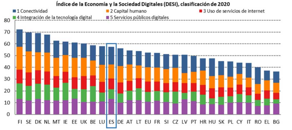 La Comisión publica los resultados del Índice de la Economía y la Sociedad Digitales (DESI) correspondiente a 2020, que analiza el rendimiento digital general de Europa, poniendo de manifiesto la importancia de la resiliencia digital en tiempos de crisis. España está entre los países que más han avanzado en el ámbito digital en los últimos cinco años y ocupa el segundo puesto en servicios públicos digitales. (Más detalles en nota de prensa)