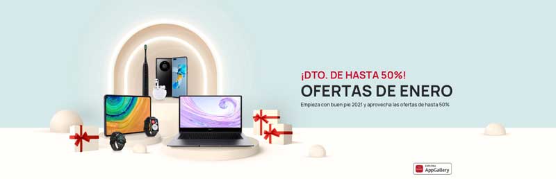 Huawei lanza una campaña de rebajas hasta el 31 de enero, para adquirir productos seleccionados de la marca con ofertas exclusivas disponibles desde Huawei Store. Hay artículos rebajados hasta el 50%, según el reclamo, para hacer 'más llevadera la entrada al 2021', dice el fabricante chino. (Más detalles en nota de prensa)