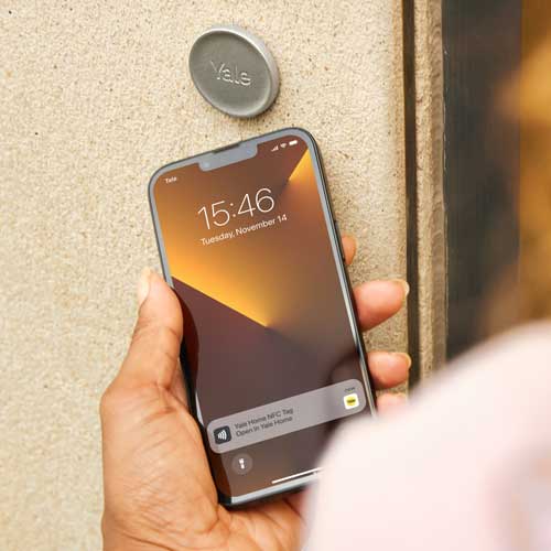 Yale presenta Dot, con tecnología NFC, como complemento para cualquier cerradura inteligente, o sistemas de apertura inteligente para armarios, para garajes y puertas exteriores. Con solo tocar el Dot con su teléfono móvil, los usuarios pueden bloquear o desbloquear su dispositivo inteligente desde cualquier lugar, siempre que estén conectados a una red wifi o bluetooth, para dar acceso a sus invitados de confianza que se encuentren cerca. (Más detalles en nota de prensa)