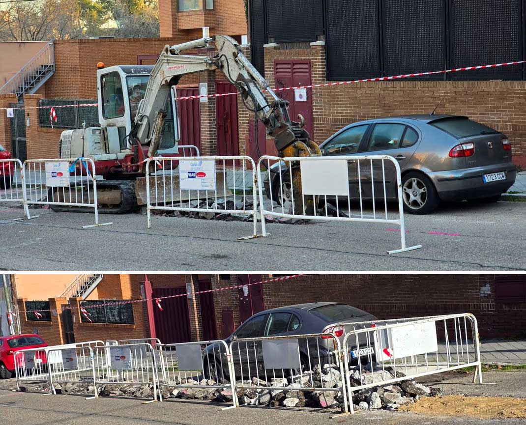Para el zafarrancho que supone poner toda una calle patas arriba, llegan los servicios municipales, ponen avisos y cintas de que dentro de un par de días no se permitirá aparcar y vamos allá, con la calle despejada. Aunque en el día de autos (nunca mejor dicho), los que vienen a romper la calle tengan que preguntar a todo el que pasa si es suyo alguno de los coches que siguen aparcados. Al final despejan.