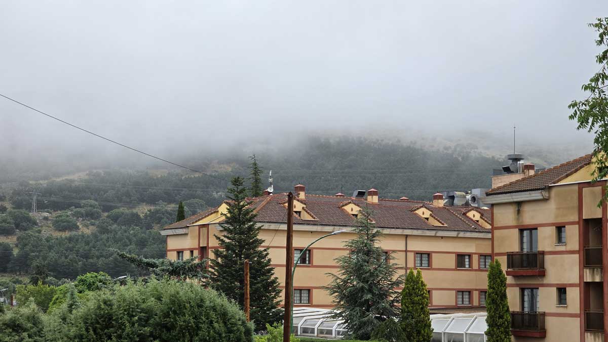 Edificios empapados y niebla sobre las montañas acabando el mes de junio. /JM