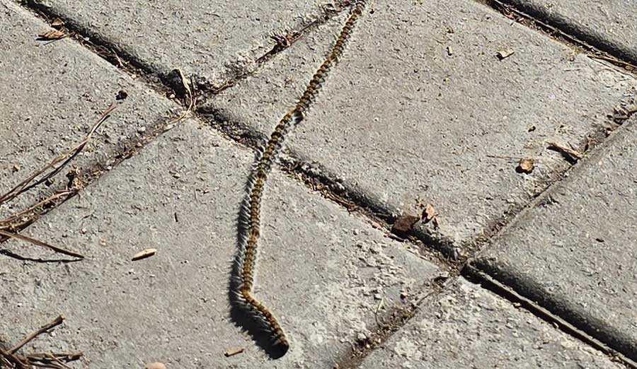 Procesionaria del pino sobre las baldosas madrileñas. /JM