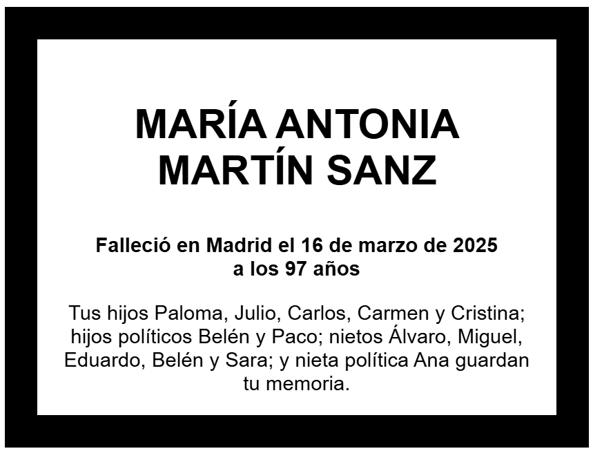 Pero la abuela consiguió reagrupar a la familia en el pueblo de Aviñó, antes de regresar a Madrid. Y María Antonia fue siempre una castiza madrileña. Hija de madrileños, casada con un nacido en Madrid. En su juventud fue modistilla. A veces cantaba. Y lo hacía bien.