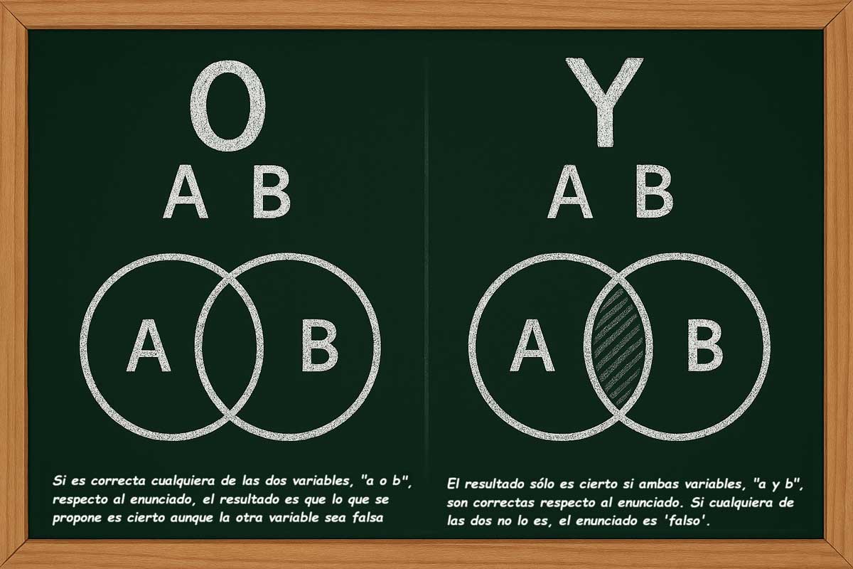 Conjunciones y operadores booleanos. / Ilustración sobre una base creada con IA generativa.
