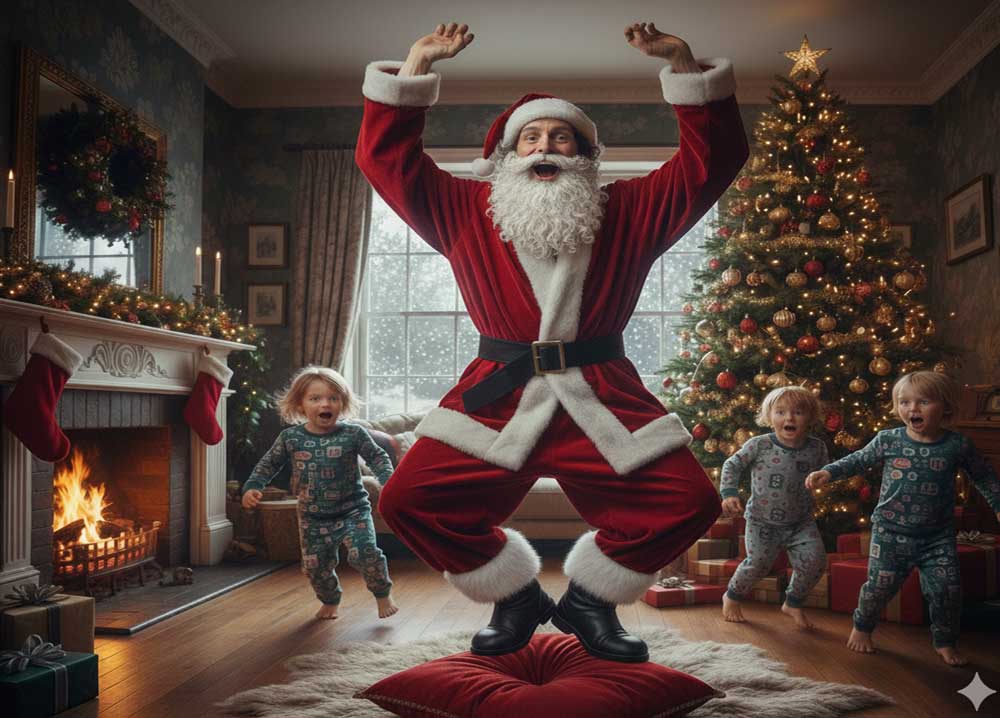 “Nada… Es un pirao, disfrazao de Papa Noel, que se pone a bailar como loco y de repente, ¡zas!, se le cae el almohadón que le hace gordo. Pero, nada, el tío sigue dando brincos como si tal, mientras los críos salen disparaos…”, describe entusiasmado el de redes.